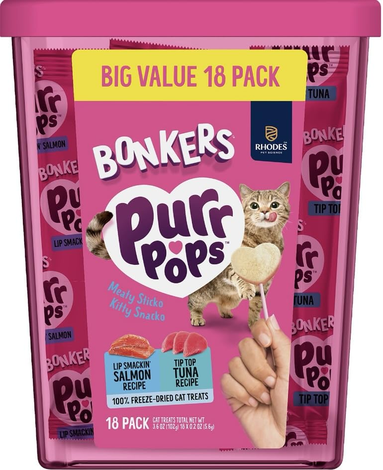 -18%Bonkers Purrpops Freeze-Dried Cat Treats, 2-18 Pack Variety Bundle with Salmon & Tuna, Catnip & Chicken Flavors, Plus 4 Cat Spring Toys—